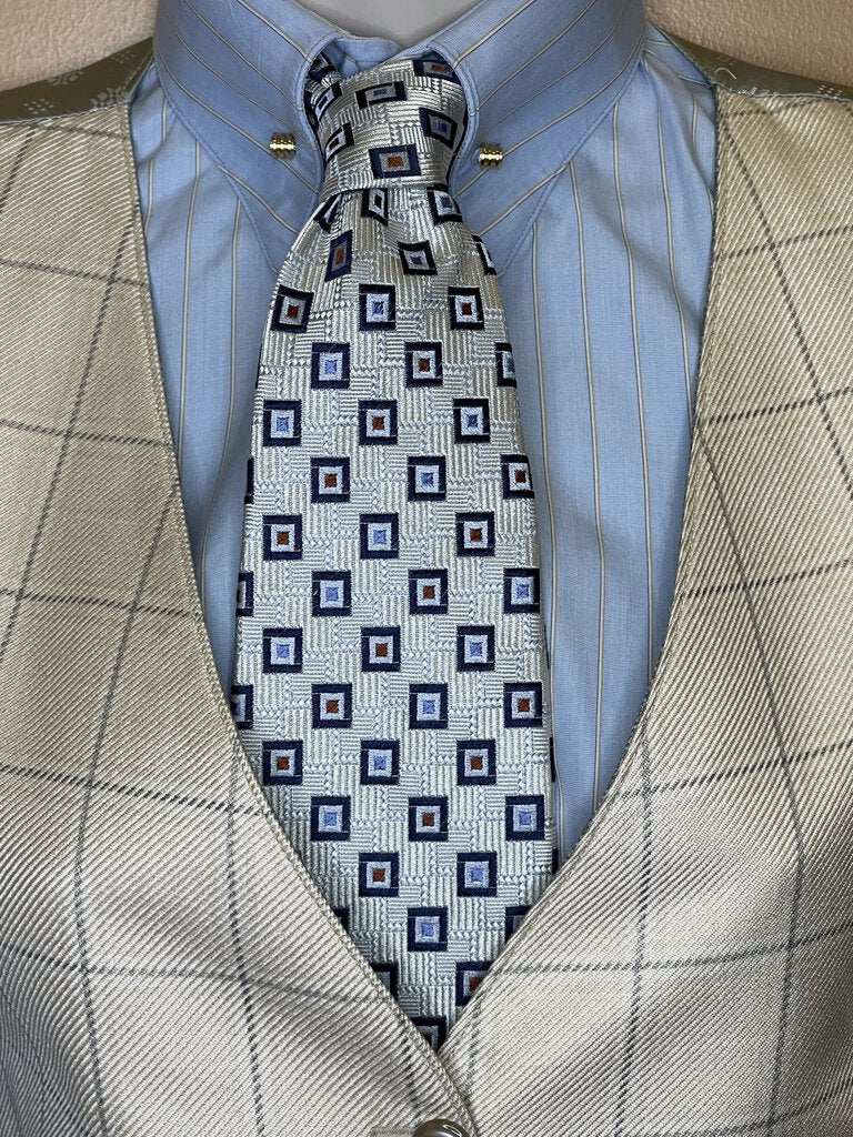 TIE SILVER WITH NAVY SQUARES